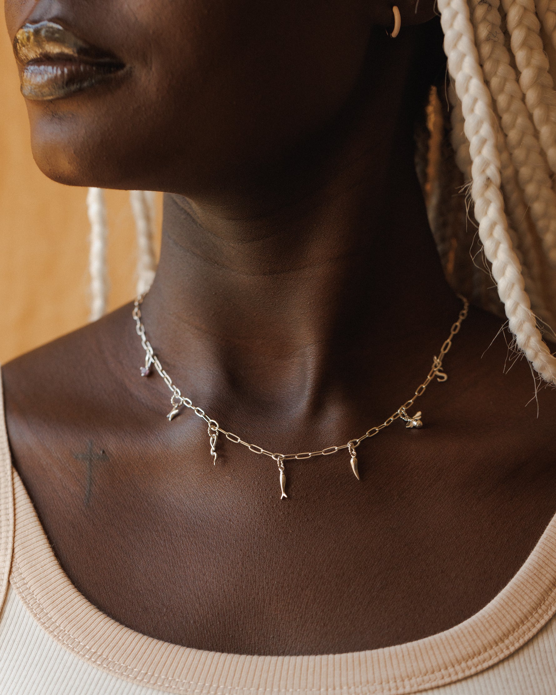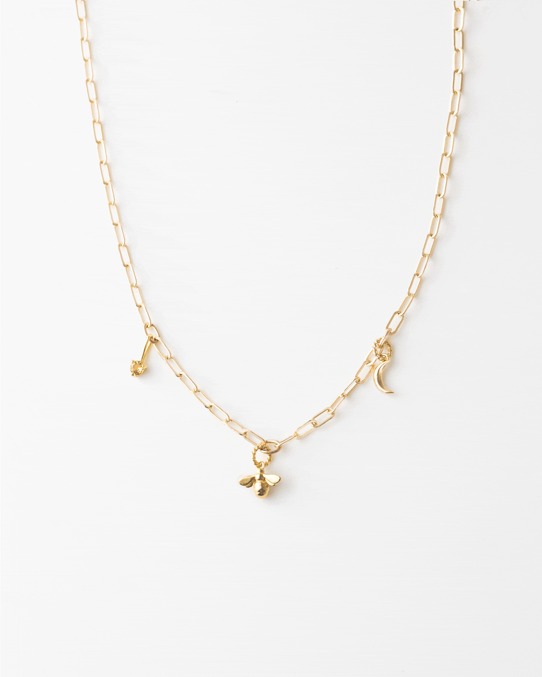Choose 3, 5 or 7 of your favorite charms that represent your personality and passions—playful, polished and a total conversation-starter. Base price includes your chain; see dropdowns for add-on charm prices.