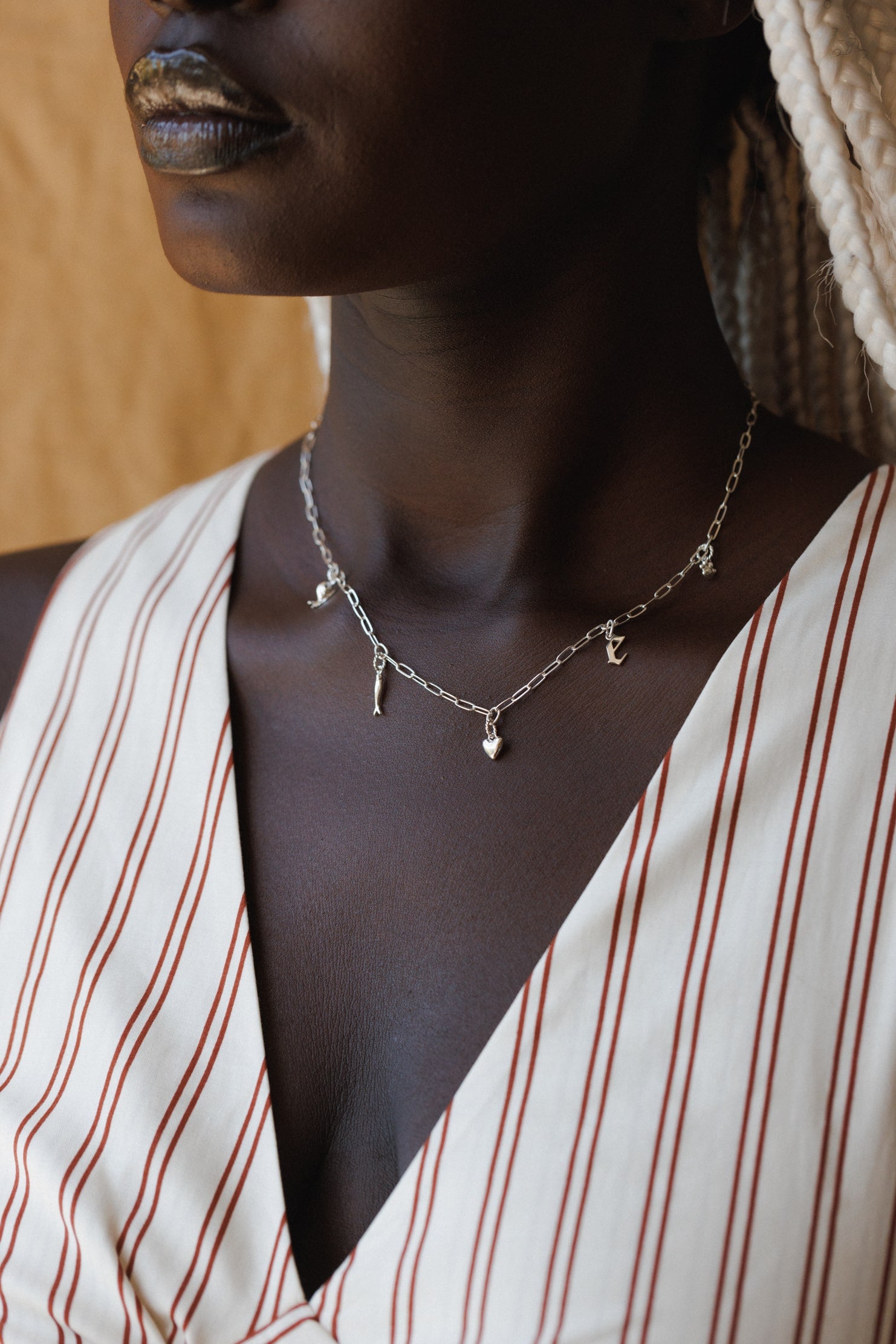 To order, select your chain metal, charms metal and desired number of charms, then select which charms you’d like in the order you’d like them to appear on the necklace from left to right (viewed as if you're holding the piece!).