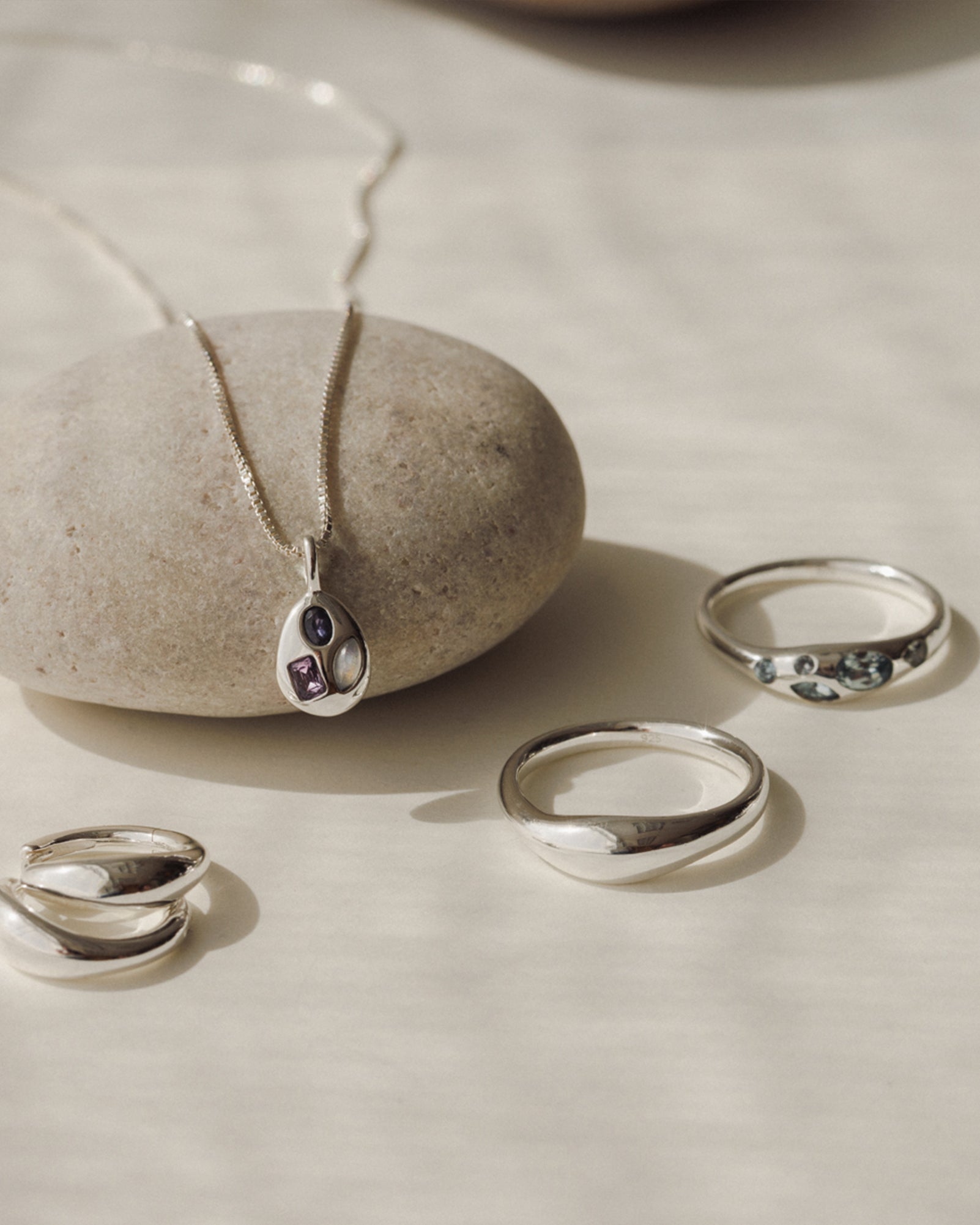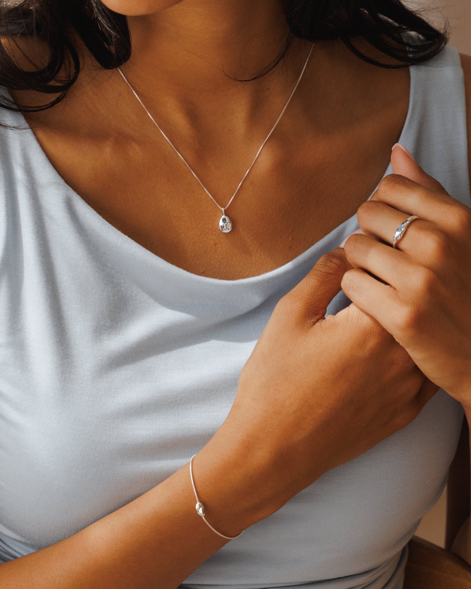 Wear this affirmation with natural iolite, amethyst and moonstone (see what we did there?) set in a gently curved pendant.