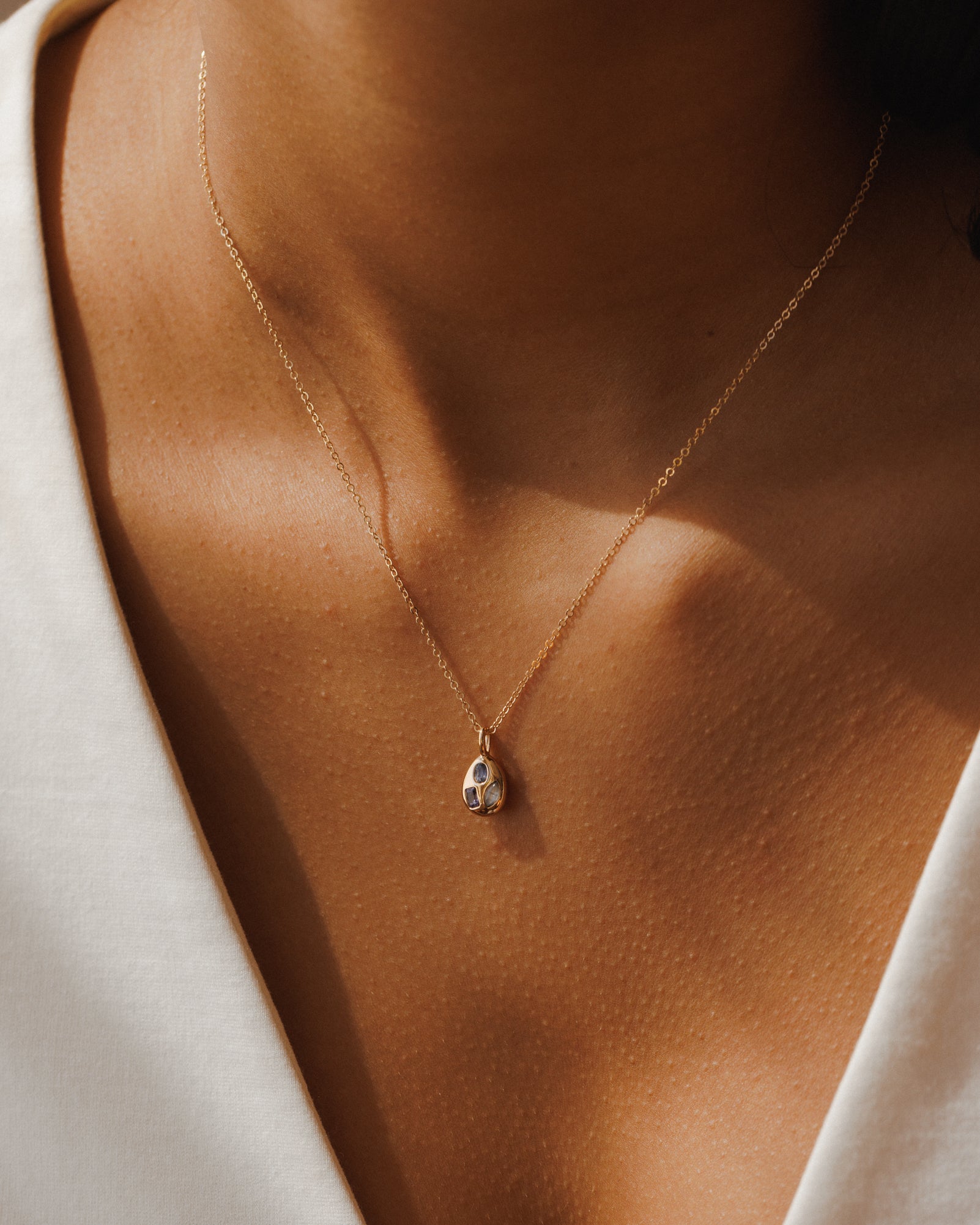 I love the colors of the gems on this necklace, moody and elegant. The size of the pendant is also perfect for every day.