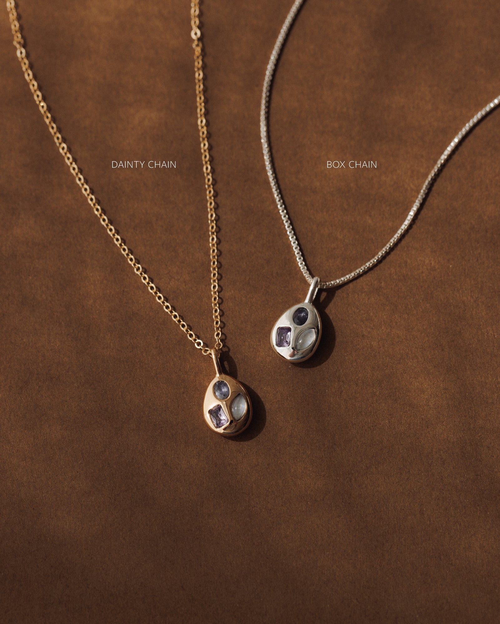 Yes! This pendant is set with genuine iolite, amethyst and moonstone, meaning each necklace will be one of a kind.