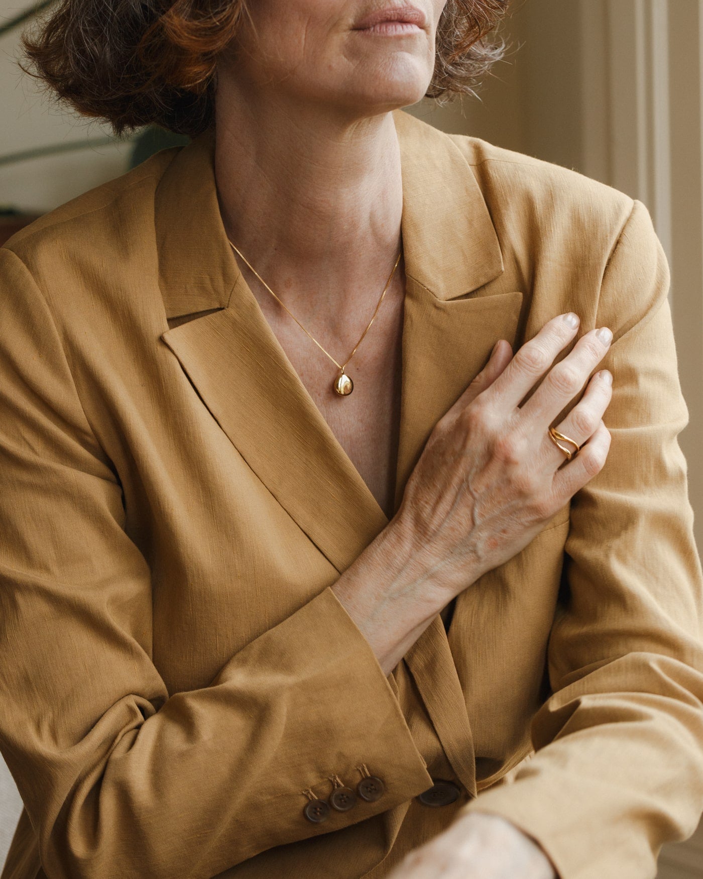 We specifically designed this piece to be elegant, timeless and work with anything—something you can dress up or down. Since it’s a bold silhouette, it can be worn on its own or layered with shorter chains!