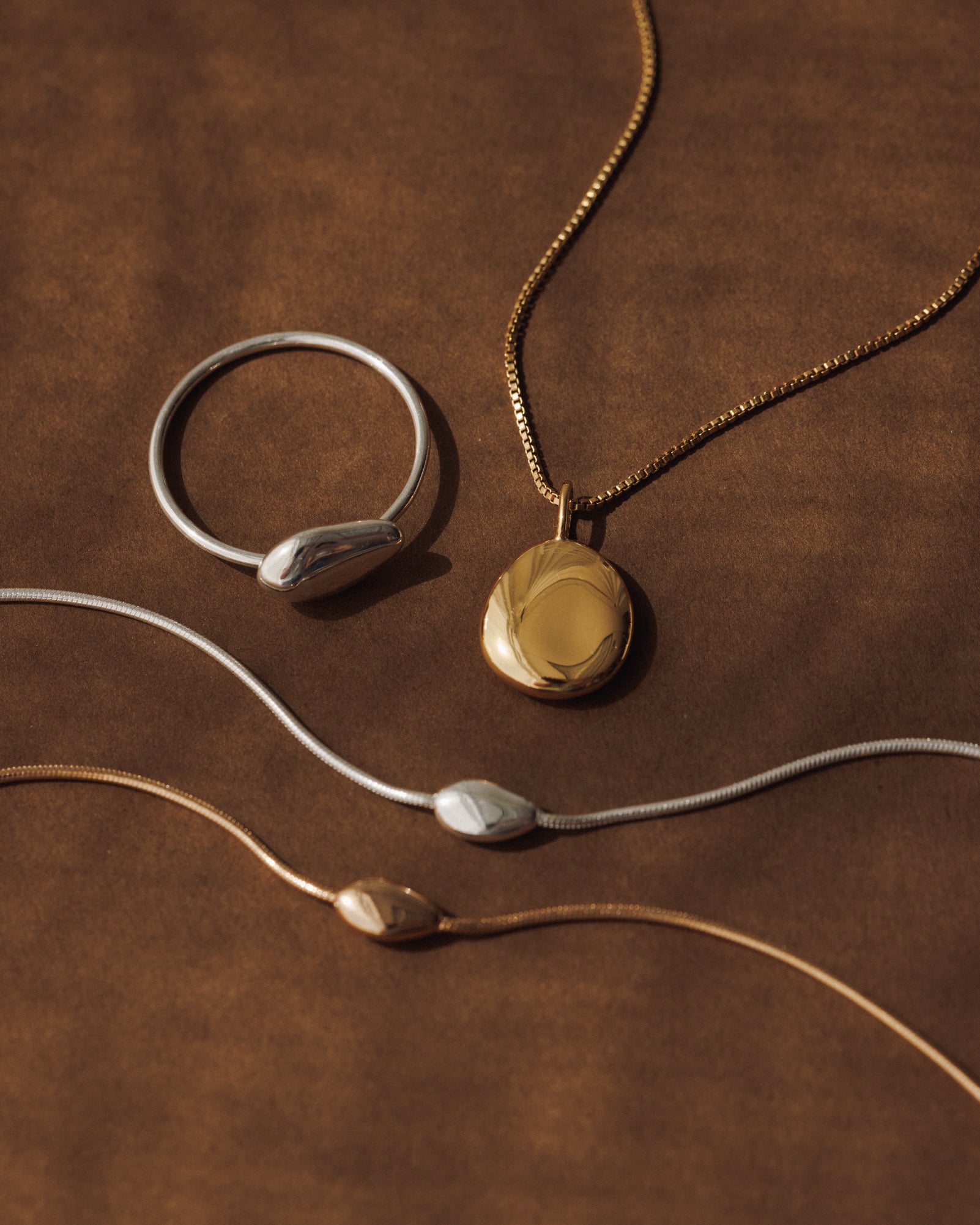 Feel the earth's embrace with our elegant take on traditional worry stone pendants. Designed with a sculptural shape, soft indentation and calming aura to settle your mind and ground your look. Part of the Serenity collection.